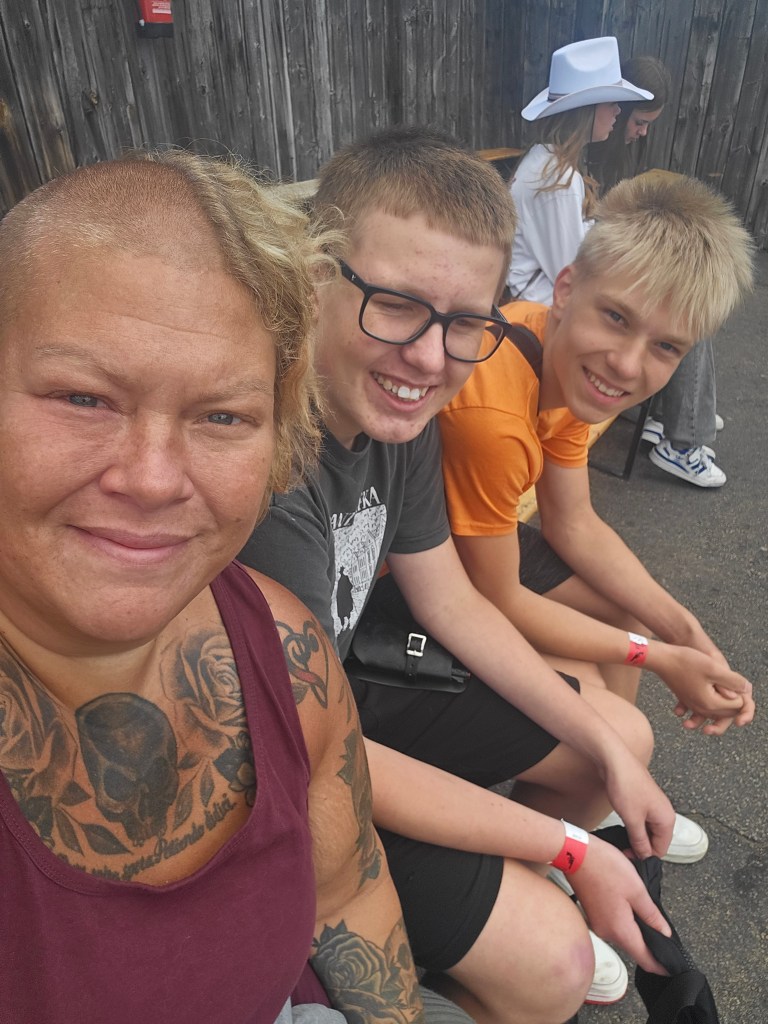 Jag, Mattias, Noa och Arvid åkte egen bil istället för minibussen eftersom vi hade med hundarna och ville kunna åka tidigare om det behövdes och det var tur det.